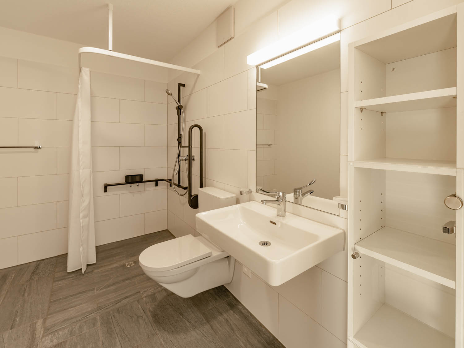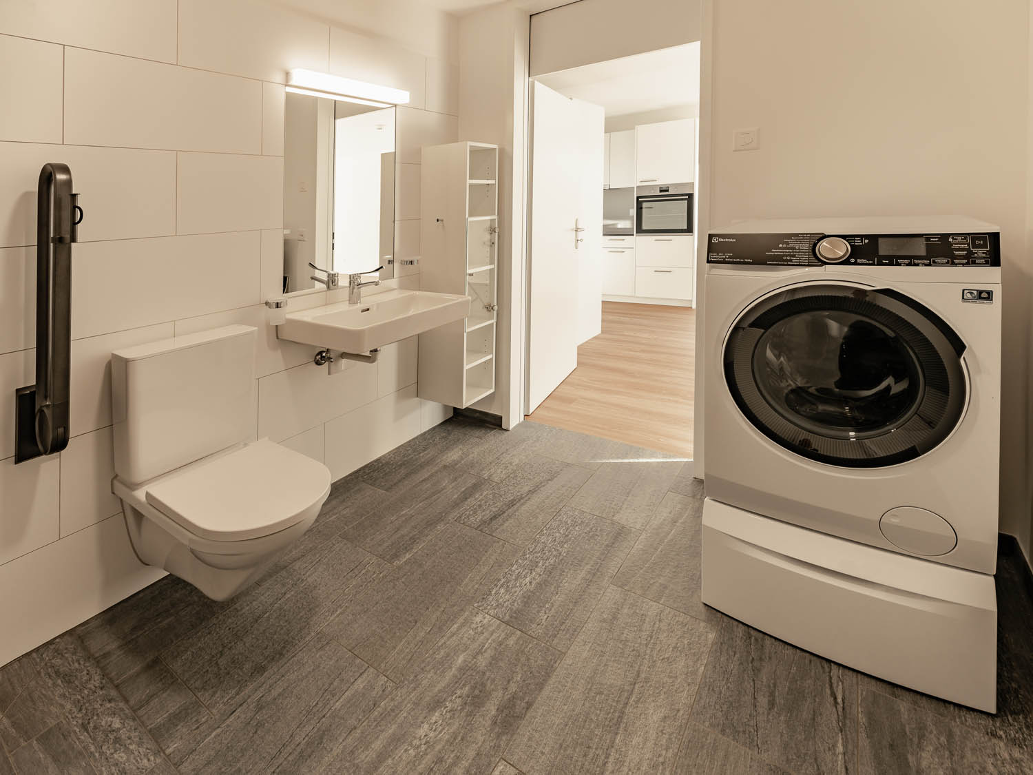 Les appartements des deux bâtiments sont construits de façon conséquente et adaptés aux besoins des seniors. Les caractéristiques principales sont une construction sans obstacles avec des sols antidérapants, un système de douche au niveau du sol, des barres d’appui, des appareils fonctionnels et simples à utiliser et bien d’autres atouts. Chaque appartement est muni d’un lave-linge et sèche-linge et des stores et marquises électriques. Pour les détenteurs d’un véhicule, des places de parc peuvent être louées.